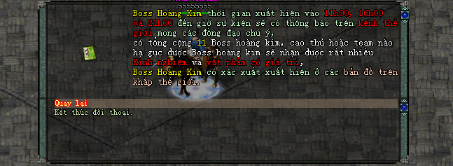 Các đồng đạo phải tự đi tìm địa điểm boss xuất hiện, không có tọa độ boss trên kênh thế giới.