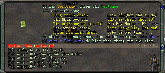 Trong này bao gồm các thông tin sự kiện mới nhất được cập nhật bởi bổn trang chủ, các thông tin liên quan đến hoạt động và sự kiện trong game được cập nhật liên tục.