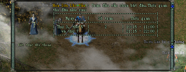Chỉ có 1 người chơi nhận được phần thưởng trong 1 lần diễn ra sự kiện, đó là người thắng cuối cùng trong trận đấu, người thắng cuộc cần đến gặp hoa sơn lão tẩu sau trận đấu để nhận thưởng, qua thời gian sẽ không thể nhận được phần thưởng nữa.