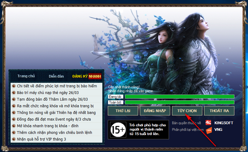 đầu tiên quý nhân sĩ khởi động AutoUpdate lên sau đó nhấn vào nút "Tùy chọn"